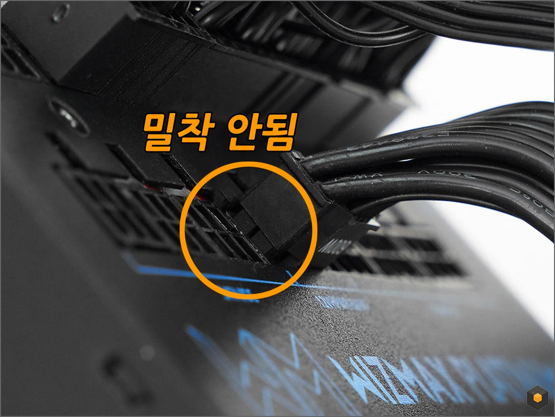 필요한 커넥터 구성에 따라 파워서플라이에 케이블을 미리 연결해 놓습니다. 연결 시 커넥터가 끝까지 체결되었는지 꼭 확인해야 합니다